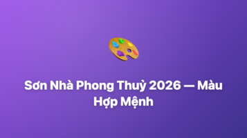 Sơn nhà phong thuỷ 2026 — chọn màu hợp mệnh, xu hướng màu đẹp, bảng phối màu theo phòng, và 5 màu nên tránh.
