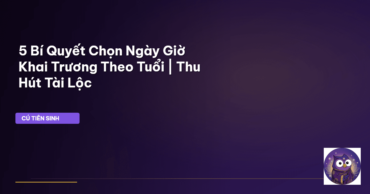 Trong bài viết này, Cú Tiên Sinh sẽ cùng quý vị khám phá 5 bí quyết thâm sâu để chọn được ngày giờ khai trương đại cát đại lợi, phù hợp với tuổi của gia chủ, biến khoảnh khắc khởi đầu thành một điểm tựa vững chắc cho sự thịnh vượng và bền vững của sự nghiệp. Hãy cùng Cú Tiên Sinh vén màn bức màn bí ẩn của thời gian và vận mệnh!