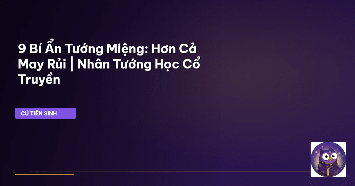 Trong bài viết này, chúng ta sẽ cùng Cú Tiên Sinh vén màn bức màn bí ẩn, giải mã 9 loại tướng miệng phổ biến trong nhân tướng học cổ truyền. Đồng thời, Cú Tiên Sinh sẽ chia sẻ những lời khuyên sâu sắc, giúp bạn không chỉ thấu hiểu vận mệnh qua tướng miệng mà còn biết cách tự mình kiến tạo một cuộc đời an lạc, thịnh vượng thông qua sự tu dưỡng tâm hồn và lời ăn tiếng nói.