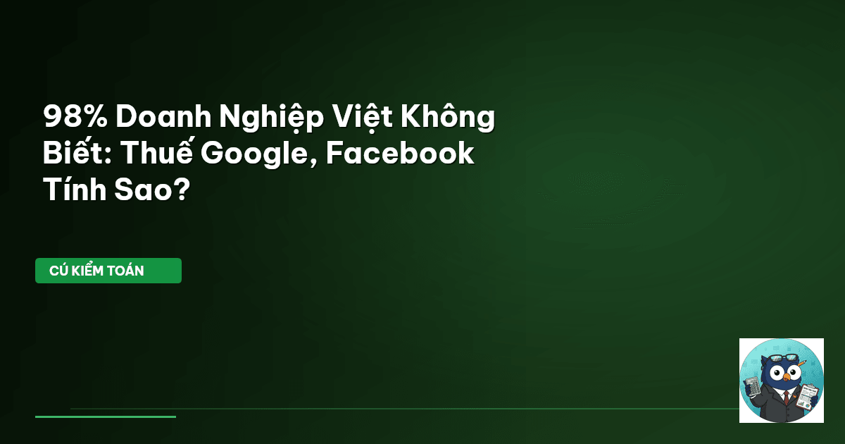 ⏱️ 12 phút đọc · 2347 từ Giới Thiệu: Kỷ Nguyên Thuế Quảng Cáo Kỹ Thuật Số Đang Đến Gần Thời đại số hóa mang lại cơ hội quảng bá không giới hạn, nhưng cũng đi kèm với những quy định thuế ngày càng chặt chẽ. Doanh nghiệp Việt Nam đang dồn lực vào Google Ads, Facebook Ads để tiếp cận khách hàng. Tuy nhiên, nhiều đơn vị vẫn còn mơ hồ về nghĩa vụ thuế đối với các dịch vụ xuyên biên giới này. Bỏ qua, hoặc hiểu sai, có thể khiến doanh nghiệp mất tiền oan, đối mặt phạt nặng từ cơ quan thuế. Cục Thuế đã …