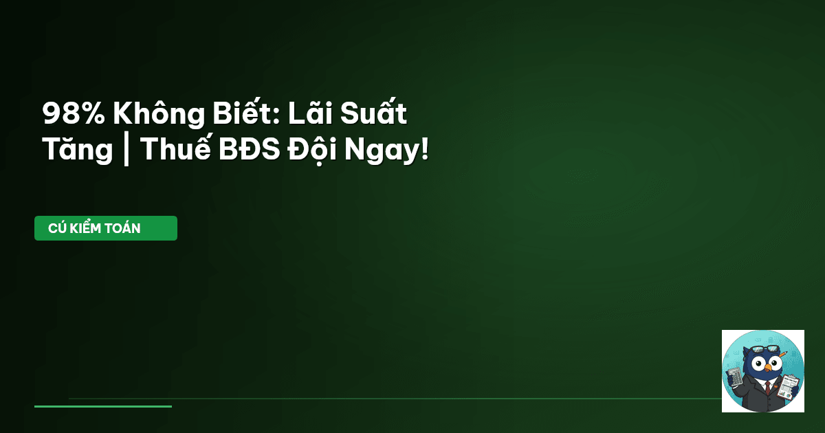 ⏱️ 13 phút đọc · 2584 từ Giới Thiệu Thời điểm này, cụm từ "lãi suất tăng" chắc chắn là nỗi ám ảnh với nhiều nhà đầu tư và người dân vay mua nhà. Bạn đang lo lắng về khoản trả nợ hàng tháng? Đúng, đó là gánh nặng thấy rõ. Nhưng Cú Kiểm Toán muốn bạn nhìn sâu hơn: Lãi suất tăng không chỉ "ăn" vào túi tiền qua các đợt tăng trả góp. Nó còn có thể gián tiếp "đội" thêm nghĩa vụ thuế bất động sản (BĐS) của bạn. Đây là điều 98% người không biết rõ. Bức tranh kinh tế vĩ mô đang biến động mạnh. Lạm phát, …