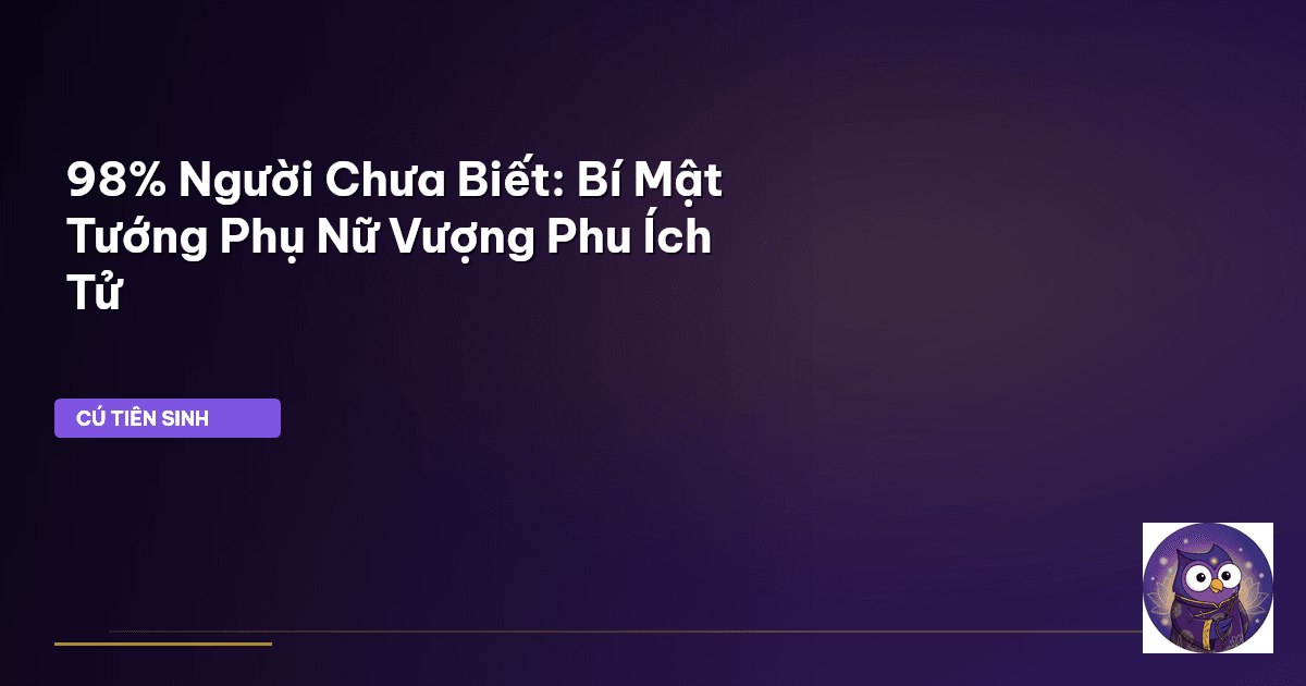 ⏱️ 15 phút đọc · 2876 từ Giới Thiệu: Vén Màn Bí Ẩn Về Tướng Vượng Phu Ích Tử Trong dòng chảy bất tận của thời gian, người Á Đông ta, đặc biệt là người Việt Nam, vẫn luôn dành một sự quan tâm đặc biệt cho những giá trị tâm linh, những lời răn dạy từ ngàn xưa. Một trong số đó là quan niệm về nhân tướng học , đặc biệt là tướng phụ nữ vượng phu ích tử. Tuy nhiên, Cú Tiên Sinh nhận thấy, không ít người vẫn còn hiểu lầm rằng tướng vượng phu đơn thuần là vẻ đẹp bề ngoài, hay một định mệnh đã an bài. Th…