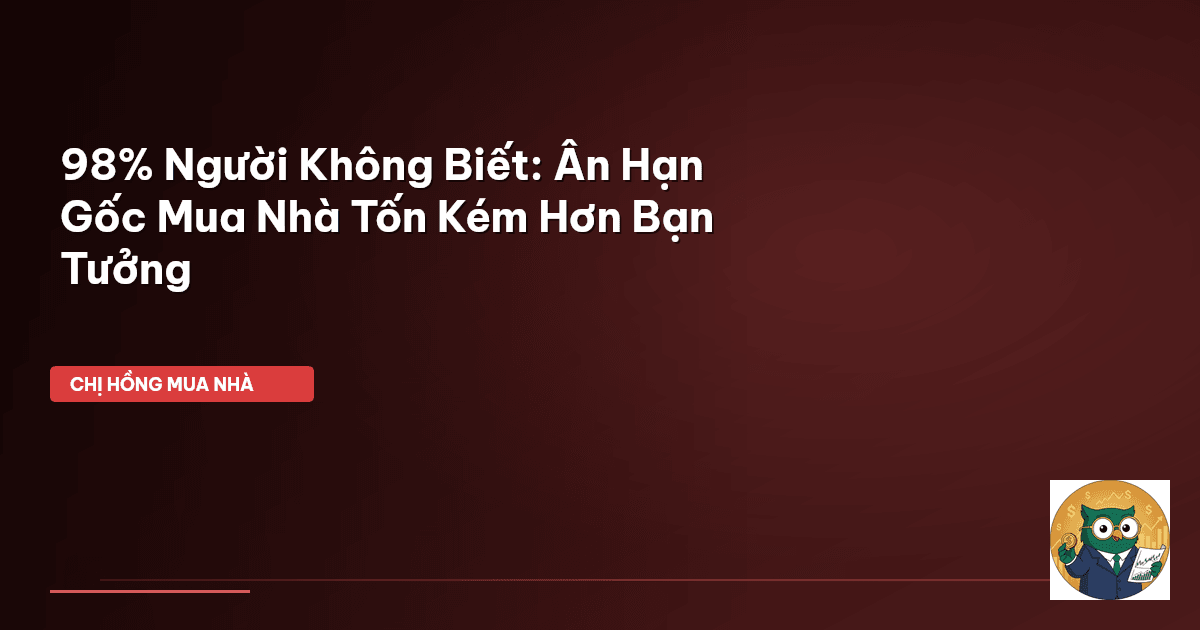 ⏱️ 11 phút đọc · 2102 từ Giới Thiệu: 'Thở Phào' Hay 'Gánh Nặng' Về Sau? Các mẹ bỉm sữa, các bố trẻ ơi, Chị Hồng lại lên sóng đây! Dạo này nhiều cặp vợ chồng trẻ cứ hay hỏi Chị Hồng về chuyện ân hạn gốc khi vay mua nhà. Nghe thì có vẻ hấp dẫn lắm đúng không? Giúp mình giảm bớt áp lực trả nợ những tháng đầu, có thêm thời gian để 'gom lúa' hoặc ổn định công việc. Nhưng các mẹ có biết không, đằng sau cái sự 'dễ thở' ấy có thể là một cái giá KHÔNG HỀ NHỎ đâu nhé! Không ít người nghĩ rằng ân hạn gốc l…
