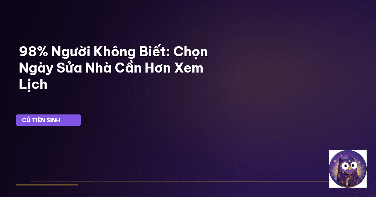 Vậy làm thế nào để chọn được ngày sửa nhà thực sự mang lại cát tường, hóa giải mọi hung khí và đón rước tài lộc về với tổ ấm? Điều này không đơn thuần là mở cuốn lịch vạn niên và chọn một ngày "Hoàng đạo" chung chung. Cú Tiên Sinh sẽ dẫn dắt quý vị đi sâu vào những tầng lớp kiến thức cổ xưa, những bí ẩn đằng sau việc lựa chọn thời điểm "Thiên thời, Địa lợi, Nhân hòa" để kiến tạo nên một không gian sống thịnh vượng, an yên.
