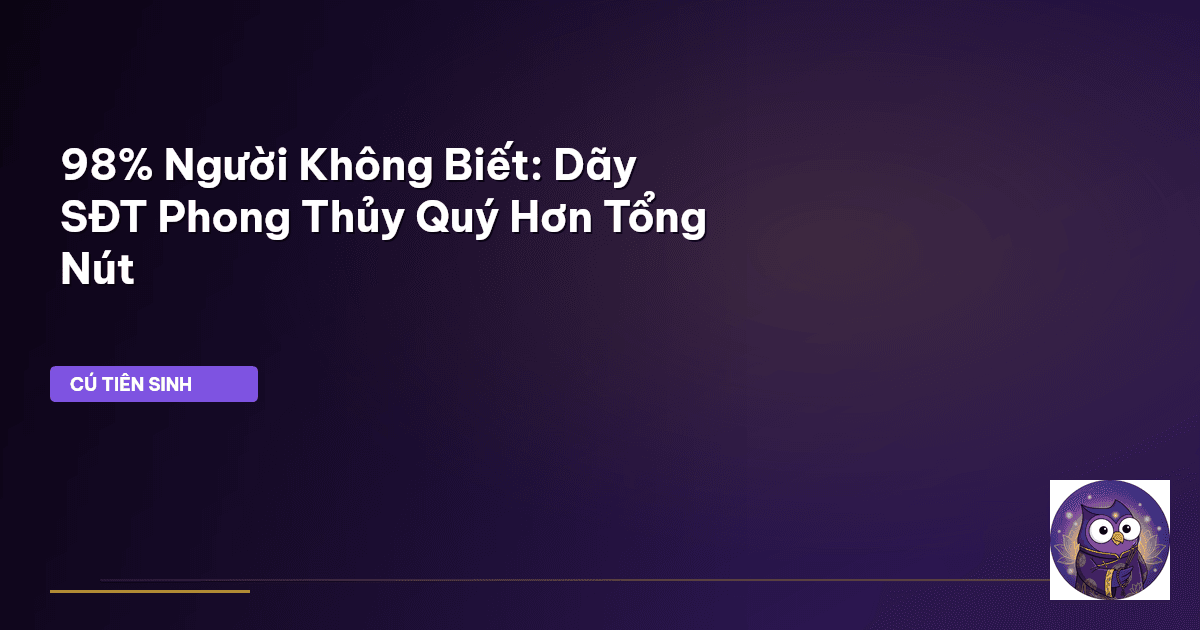 ⏱️ 12 phút đọc · 2235 từ Giới Thiệu: Bí Ẩn Đằng Sau Dãy Số Vận Mệnh Kính thưa quý vị và các bạn hữu, Cú Tiên Sinh vẫn thường quán chiếu về những mối duyên lành giữa con người và vạn vật. Trong thời đại số hóa ngày nay, một dãy số điện thoại không chỉ đơn thuần là phương tiện liên lạc, mà còn được coi là một "vi vũ trụ" thu nhỏ, ẩn chứa những mật mã về vận mệnh. Rất nhiều người, khi chọn lựa số điện thoại, thường chỉ tập trung vào việc tính toán "tổng nút" sao cho đẹp, hoặc tìm kiếm những con số …