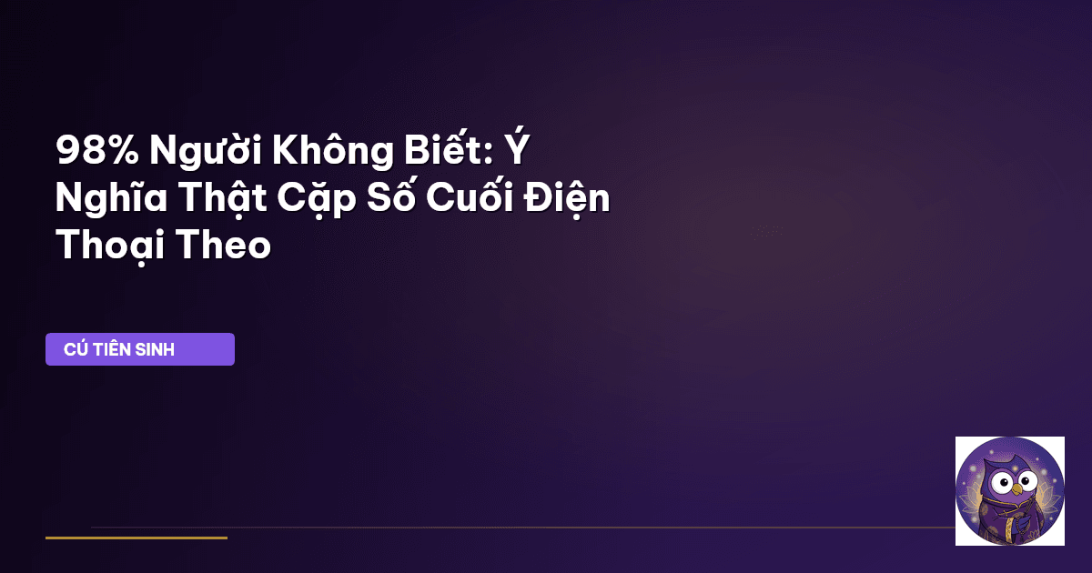 ⏱️ 18 phút đọc · 3486 từ Giới Thiệu Kính thưa quý vị, Cú Tiên Sinh vẫn thường nghe nhân gian bàn tán về những con số may mắn, đặc biệt là những dãy số cuối trong sim điện thoại. Người thì tin rằng số 68 mang lại tài lộc dồi dào, người lại mến mộ số 39 bởi niềm tin về thần tài. Song, liệu quý vị đã bao giờ tự hỏi: Ý nghĩa thực sự của những cặp số này là gì? Phải chăng chúng chỉ là những con số vô tri hay ẩn chứa một dòng chảy năng lượng, một mật mã vận mệnh mà bấy lâu nay chúng ta chưa thực sự th…