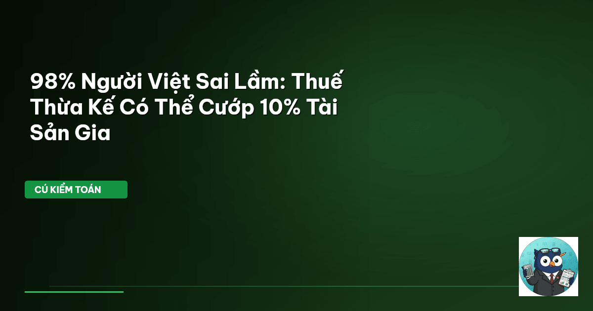 Bài viết này sẽ 'soi' thẳng vào các quy định về thuế thừa kế tại Việt Nam, vạch trần những sai lầm phổ biến và cung cấp các chiến lược thông minh để bạn bảo vệ tài sản gia đình mình. Hãy cùng Cú Kiểm Toán đi sâu vào từng con số, từng điều luật để không một đồng di sản nào bị thất thoát vô ích, đảm bảo tương lai vững chắc cho thế hệ kế cận.