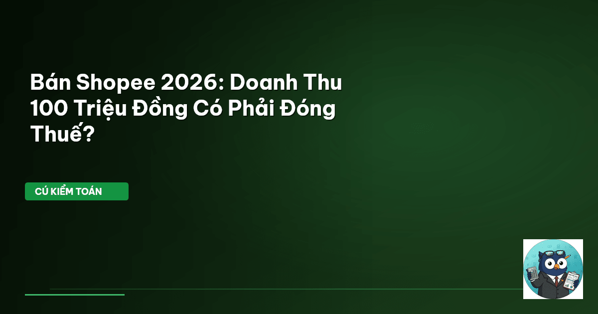 ⏱️ 11 phút đọc · 2044 từ Giới Thiệu: Bán Hàng Online 2026 – Khi 'Sân Chơi' Lớn Hơn, Trách Nhiệm Cũng Tăng Theo Kinh doanh trên Shopee hay bất kỳ nền tảng thương mại điện tử nào khác đang là xu hướng. Hàng triệu người đã và đang tạo ra thu nhập từ kênh này. Đến năm 2026, dự kiến thị trường sẽ còn sôi động hơn nhiều. Nhưng đi kèm với cơ hội là trách nhiệm pháp lý. Cú Kiểm Toán nhận thấy nhiều người bán vẫn còn mơ hồ về nghĩa vụ thuế. "Bán online có phải đóng thuế không?" hay "Ngưỡng bao nhiêu thì …