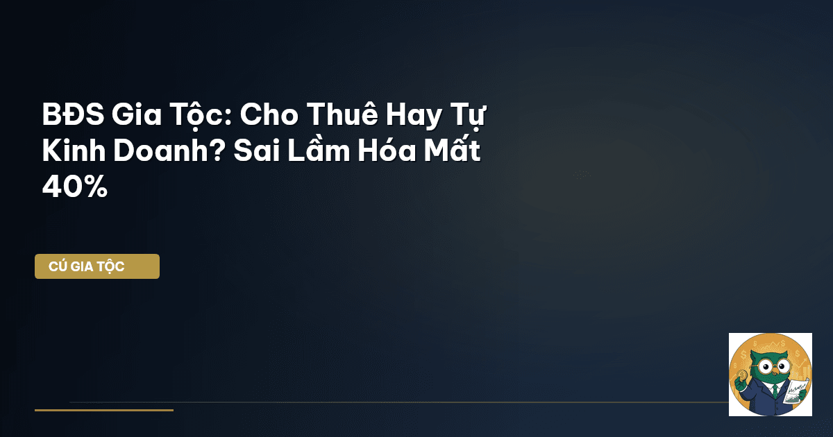 ⏱️ 16 phút đọc · 3196 từ BĐS Gia Tộc: Quyết Định Sinh Tử Giữa Cho Thuê Và Tự Kinh Doanh Kính chào quý vị, những người con cháu đang thừa hưởng hoặc gánh vác cơ nghiệp gia đình! Ông Chú Vĩ Mô đã thấy không ít gia tộc Việt, trải qua bao thăng trầm, cuối cùng cũng tích lũy được những khối bất động sản (BĐS) giá trị. Đó có thể là miếng đất ông bà để lại, căn nhà mặt phố cha mẹ xây nên, hay cả một dãy cửa hàng buôn bán tấp nập. Thế nhưng, câu chuyện thường không dừng lại ở việc sở hữu. Cái khó, cái đ…