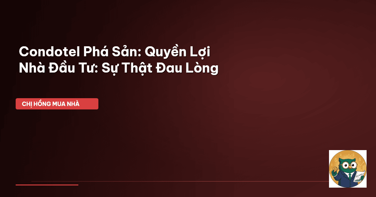 ⏱️ 12 phút đọc · 2214 từ Giới Thiệu: Condotel Phá Sản — Khi Giấc Mơ Thành Ác Mộng Chào mấy mẹ, Chị Hồng lại lên sóng đây! Dạo này đi đâu cũng nghe chuyện ồn ào về condotel, nào là chủ đầu tư "chây ì" cam kết lợi nhuận, nào là dự án đóng cửa, thậm chí còn có trường hợp phá sản nữa. Nghe mà xót xa cho những gia đình đã trót dồn hết tiền tích góp, tiền dưỡng già vào đó, giờ thì không biết phải làm sao để gỡ gạc lại. Nhiều mẹ cứ nghĩ condotel là "ngôi nhà thứ hai" vừa để nghỉ dưỡng, vừa có dòng tiền…