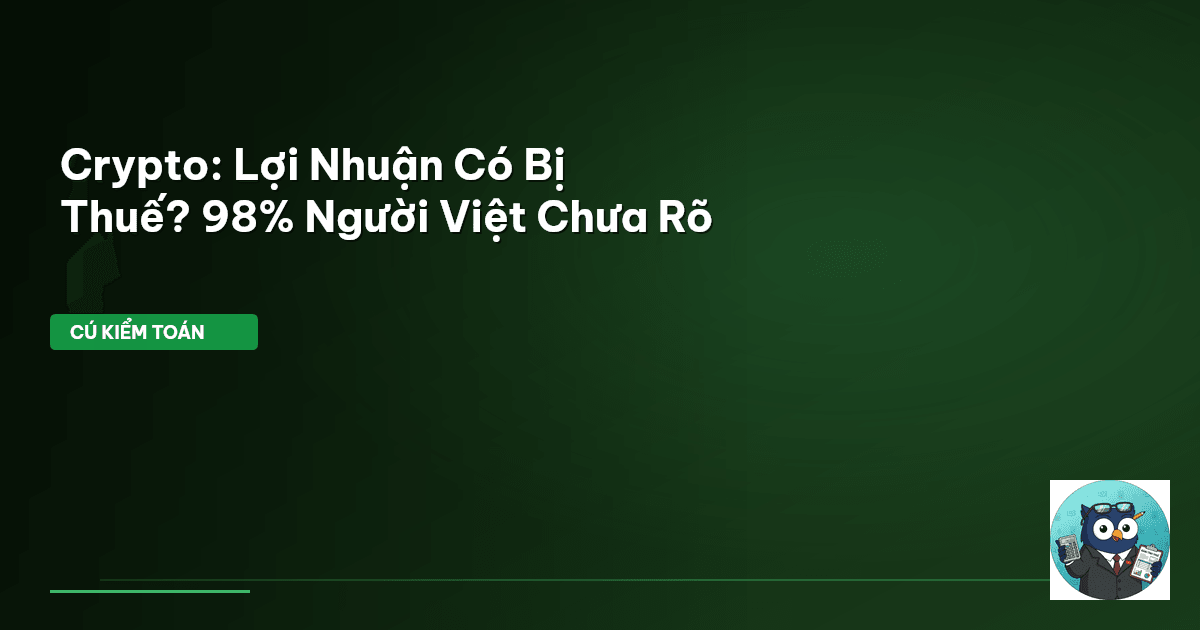 ⏱️ 10 phút đọc · 1879 từ Giới Thiệu: Đừng Để Lợi Nhuận Crypto Biến Thành Rủi Ro Thuế Thị trường tiền điện tử bùng nổ, kéo theo vô vàn cơ hội và cả những câu hỏi hóc búa. Một trong số đó là: "Lợi nhuận từ crypto có phải đóng thuế không?" Nhiều nhà đầu tư vẫn lầm tưởng rằng vì Việt Nam chưa có luật thuế crypto riêng, nên nghĩa vụ thuế là con số 0. Đây chính là một sai lầm nghiêm trọng mà Cú Kiểm Toán phải chỉ rõ ngay. Sự thật bất ngờ: Dù chưa có quy định cụ thể cho tiền điện tử, nhưng các giao dịc…