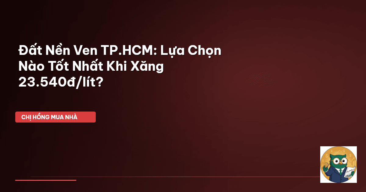 ⏱️ 12 phút đọc · 2285 từ Giới Thiệu: Giấc Mơ Đất Nền Ven Đô Và Cái Giá Thầm Lặng Chào cả nhà! Chị Hồng biết là nhiều mẹ bỉm, nhiều gia đình trẻ ở TP.HCM đang ấp ủ giấc mơ sở hữu một miếng đất nho nhỏ ven đô, vừa để an cư, vừa để 'để dành' cho con cái. Tâm lý chung là mua đất ở xa thì giá mềm hơn, dễ thở hơn so với trung tâm Sài Gòn đắt đỏ đúng không nào? Nhưng mà, có bao giờ cả nhà mình nghĩ đến những cái giá thầm lặng mà mình sẽ phải trả mỗi ngày khi đã mua được miếng đất ấy chưa? Hôm nay, Chị …