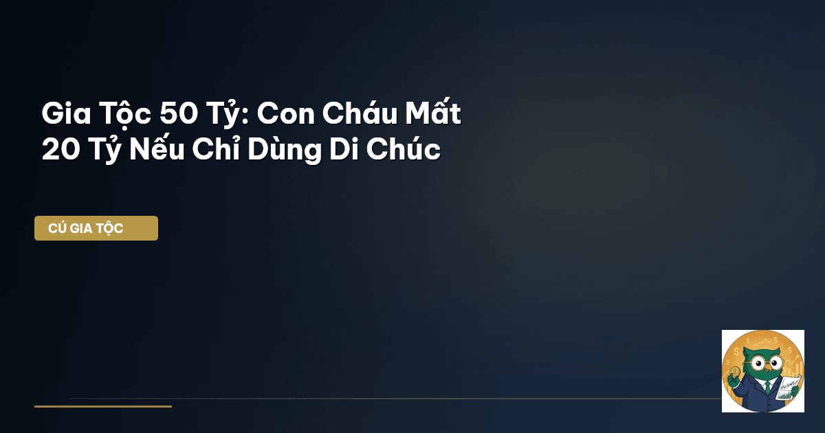 ⏱️ 13 phút đọc · 2555 từ Giới Thiệu: Di Chúc – Giải Pháp Đơn Lẻ Hay Khởi Đầu Một Chiến Lược Lớn? Ông bà mình thường nói: "Của cải làm ra như nước chảy, giữ được mới là tài." Ngày nay, với khối tài sản gia đình lên đến 50 tỷ, nhiều gia tộc Việt vẫn đang đứng trước một nỗi lo lớn: làm sao để con cháu không mất đi 20 tỷ hay hơn nữa chỉ vì thiếu một kế hoạch thừa kế toàn diện? Thật trớ trêu khi sự giàu có lại tiềm ẩn rủi ro nếu không được quản lý đúng cách. Quan niệm truyền thống thường cho rằng một…