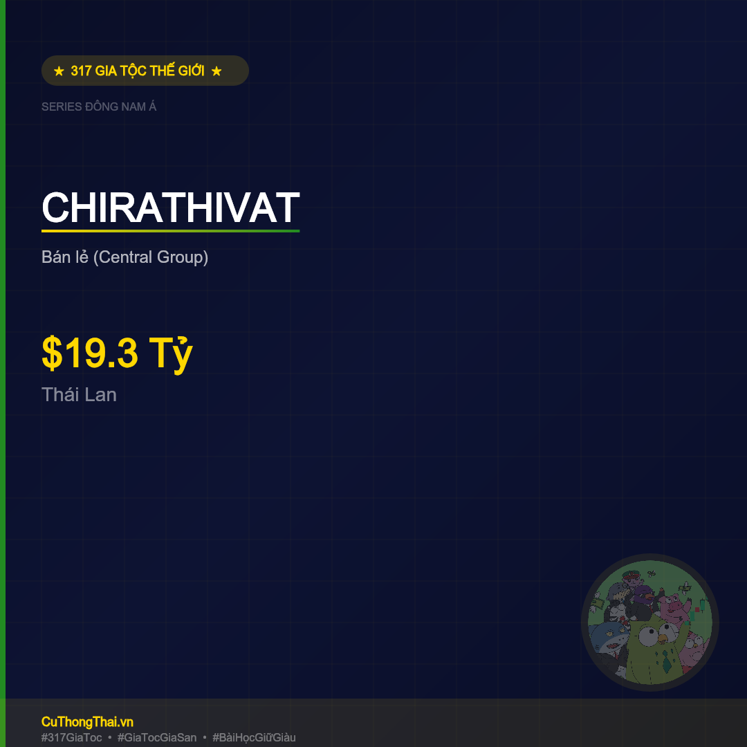 "Chirathivat — $19.3 Tỷ. Thái Lan. Bán lẻ (Central Group). Bài học giữ giàu qua nhiều thế hệ."