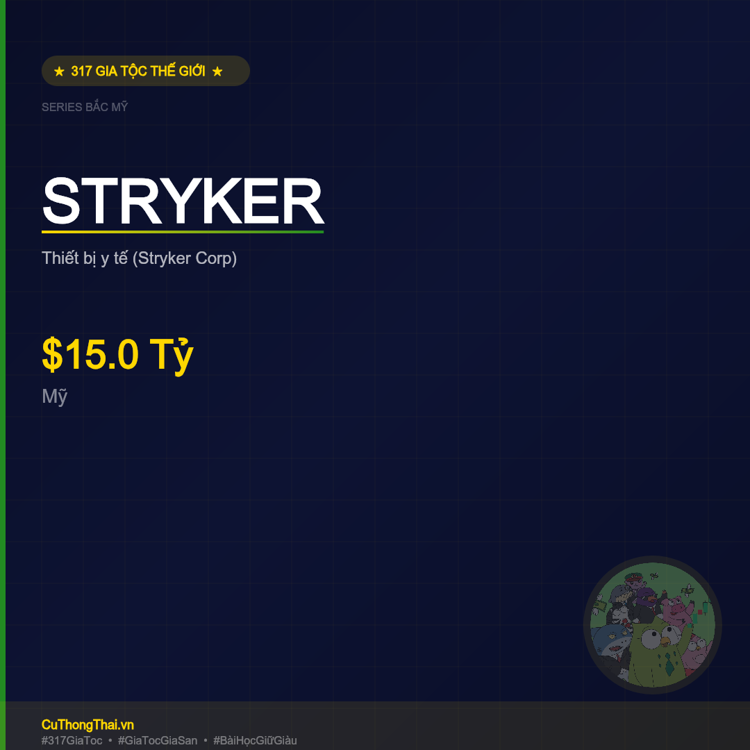 "Stryker — $15.0 Tỷ. Mỹ. Thiết bị y tế (Stryker Corp). Bài học giữ giàu qua nhiều thế hệ."