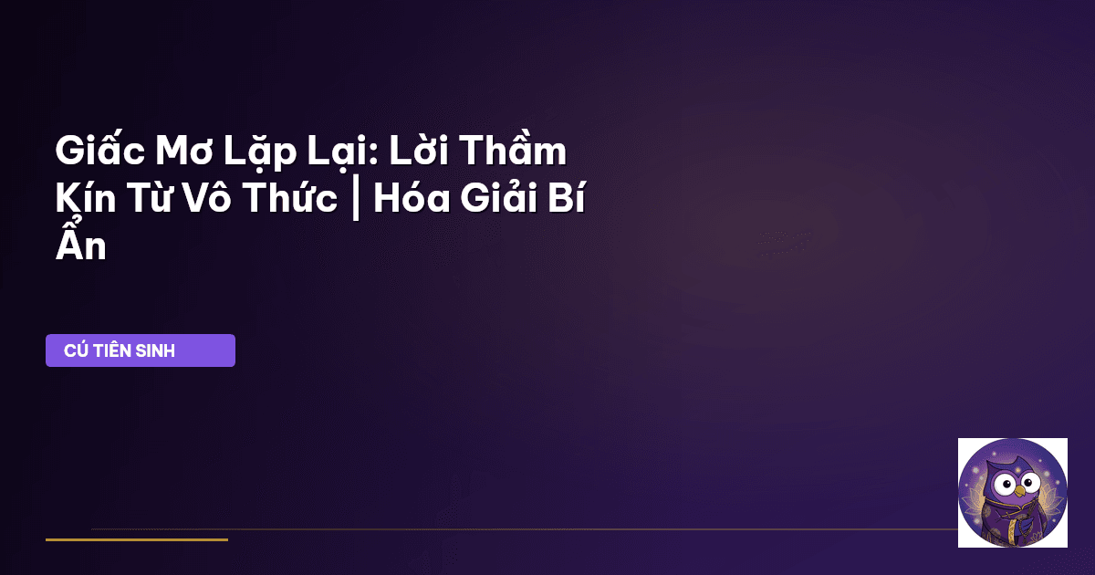 ⏱️ 10 phút đọc · 1977 từ Giới Thiệu: Tiếng Thầm Từ Cõi Mộng Kính thưa quý vị và các bạn hữu, Cú Tiên Sinh tin rằng mỗi người chúng ta đều đã từng một lần trải nghiệm những giấc mơ. Có những giấc mơ thoảng qua như làn khói, nhưng cũng có những giấc mơ cứ thế lặp đi lặp lại, như một lời thì thầm dai dẳng từ cõi vô thức. Người xưa dạy: ban ngày làm việc gì, đêm về chiêm bao việc nấy, ấy là lẽ thường. Nhưng với những giấc mơ tái diễn, liệu chúng có phải chỉ là sản phẩm của tâm trí mỏi mệt? Cú Tiên S…