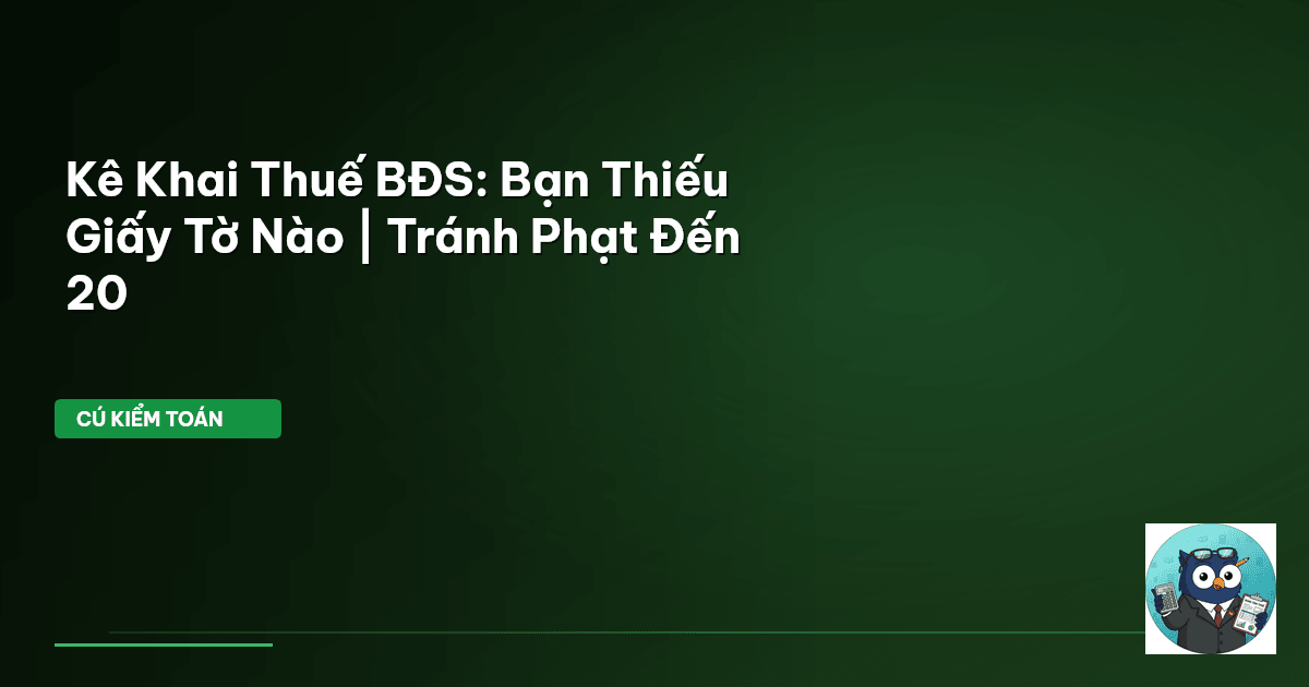 ⏱️ 13 phút đọc · 2563 từ Giới Thiệu: Đừng Để Thiếu Một Tờ Giấy, Mất Cả Triệu Bạc! Trong thế giới bất động sản (BĐS), giao dịch nhanh gọn. Nhưng kê khai thuế? Thường khiến người ta đau đầu. Nhiều người nghĩ chỉ cần Sổ đỏ là đủ. Sai hoàn toàn! Thiếu một giấy tờ nhỏ, thủ tục đình trệ, tiền phạt cứ thế mà tăng. Cú Kiểm Toán đã chứng kiến không ít trường hợp nộp hồ sơ tới 3, 4 lần mới đủ, tiêu tốn thời gian, công sức, và cả tiền bạc. Rủi ro lớn nhất? Phạt hành chính. Căn cứ Khoản 1, Điều 10 Nghị định…