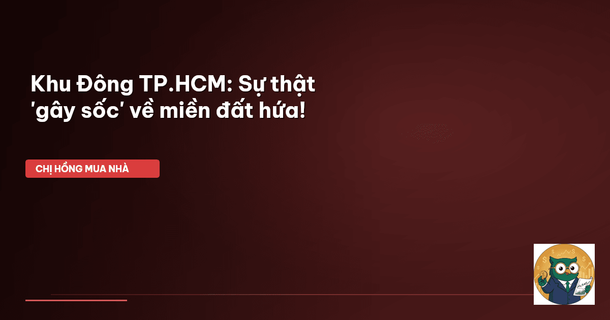 ⏱️ 13 phút đọc · 2436 từ Giới Thiệu: Khu Đông TP.HCM — Miền Đất Hứa Còn 'Hứa Hẹn' Không? Chào cả nhà Cú Thông Thái! Chị Hồng biết nhiều ông bố bà mẹ đang ôm ấp giấc mơ an cư lạc nghiệp ở TP.HCM, đặc biệt là khu vực phía Đông sôi động. Nhớ hồi xưa, cứ nghe tới Khu Đông là y như rằng giá nhà đất tăng vù vù, ai mua cũng lời to. Người ta cứ rỉ tai nhau 'Khu Đông là miền đất hứa' mà! Nhưng mà giờ đây, khi nhìn vào bảng giá và thông tin quy hoạch, không ít người lại hoài nghi: Liệu Khu Đông có còn 'hứ…