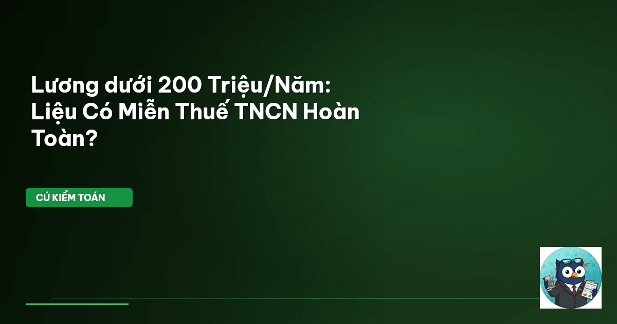 ⏱️ 13 phút đọc · 2461 từ 200 Triệu Đồng/Năm: Ngưỡng "Vàng" Hay Chỉ Là Lầm Tưởng Thuế TNCN? Nhiều người lao động, chủ kinh doanh cá thể tin rằng: chỉ cần thu nhập dưới 200 triệu đồng mỗi năm là sẽ được "miễn hoàn toàn" nghĩa vụ thuế thu nhập cá nhân (TNCN). Đây là một nhận định phổ biến nhưng chưa thực sự chính xác , và thường dẫn đến những hiểu lầm không đáng có. Trong bối cảnh chi phí sinh hoạt ngày càng tăng cao, từ giá thuê nhà đến giá xăng, mọi người càng quan tâm đến việc tối ưu hóa tài chí…