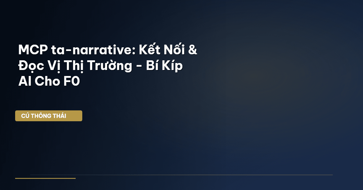 🎯 Key Takeaways1MCP ta-narrative kết hợp phân tích kỹ thuật với 'narrative' vĩ mô và dòng tiền, cung cấp cái nhìn toàn diện hơn về thị trường.2Bạn có thể kết nối MCP ta-narrative thông qua API của Cú Thông Thái (không cần biết code sâu) để tự động hóa việc nhận các phân tích sâu và 'câu chuyện' thị trường.3Công cụ này giúp nhà đầu tư Việt Nam nâng cấp khả năng 'đọc vị' thị trường, ra quyết định đầu tư kiên định và chính xác hơn dựa trên dữ liệu tổng hợp bởi AI.🦉 Cú Thông Thái khuyênTheo dõi thêm phân tích vĩ mô và công cụ quản lý tài sản tại vimo.cuthongthai.vn