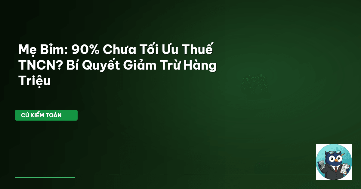 🦉 Cú nhận xét: Chi phí sinh hoạt tăng, mỗi đồng tiết kiệm được đều quý giá. Và thuế TNCN, thường bị bỏ qua, lại là một 'mỏ vàng' tiềm năng để giảm gánh nặng. Mẹ bỉm không chỉ cần chi tiêu thông minh mà còn phải tối ưu thuế một cách triệt để.