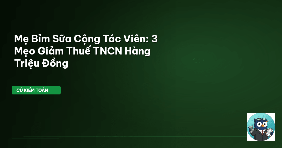 ⏱️ 11 phút đọc · 2199 từ Giới Thiệu: Thu Nhập Cộng Tác Viên Và Nỗi Lo Thuế Của Mẹ Bỉm Sữa Trong thời đại số, công việc cộng tác viên bùng nổ. Đặc biệt, với các mẹ bỉm sữa, đây là cơ hội vàng để vừa chăm sóc gia đình, vừa có thêm thu nhập. Tuy nhiên, nhiều người vẫn lơ mơ về thuế. Ai cũng sợ nộp thuế. Sợ sai. Sợ bị phạt. Nhưng Cú Kiểm Toán ở đây để nói rõ: Thuế thu nhập cá nhân (TNCN) cho cộng tác viên, đặc biệt là các mẹ bỉm sữa, không hề phức tạp như bạn nghĩ. Chỉ cần nắm vững vài quy định cơ b…