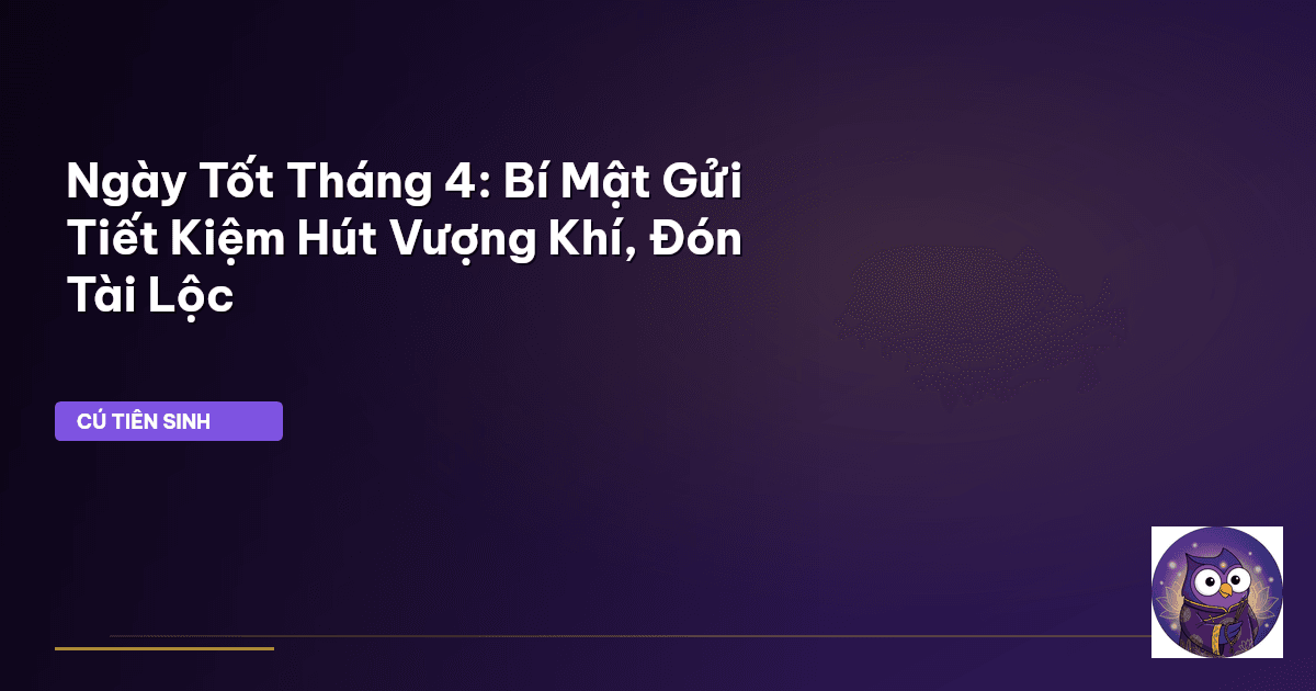 Tháng Tư, với tiết trời ấm áp, cây cối đâm chồi nảy lộc, thường được coi là tháng của sự khởi đầu và tăng trưởng. Vậy, làm thế nào để chúng ta có thể nắm bắt được những ngày vượng khí đặc biệt trong tháng Tư này, biến việc gửi tiết kiệm thành một hành động không chỉ mang lại lợi nhuận vật chất mà còn thu hút tài lộc và bình an theo phong thủy? Cú Tiên Sinh sẽ cùng quý vị vén màn bí ẩn này, khám phá những ý nghĩa tâm linh đằng sau hành động tài chính quen thuộc, và hướng dẫn quý vị cách thức để "sinh lời gấp bội" theo một nghĩa sâu sắc hơn.