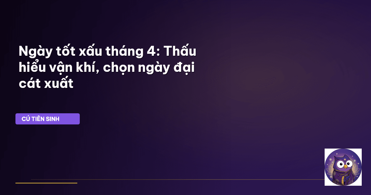 Cú Tiên Sinh tin rằng, việc chọn ngày không phải là mê tín dị đoan, mà là nghệ thuật hòa mình vào dòng chảy vận khí của vũ trụ, là sự tinh tế trong việc lắng nghe nhịp điệu của đất trời để hành động đúng lúc, đúng thời điểm. Bài viết này sẽ cùng quý vị khám phá những bí mật đằng sau việc chọn ngày tốt xấu tháng 4, đặc biệt cho những chuyến xuất hành quan trọng, để mỗi hành trình đều là khởi đầu cho sự may mắn và thành công.