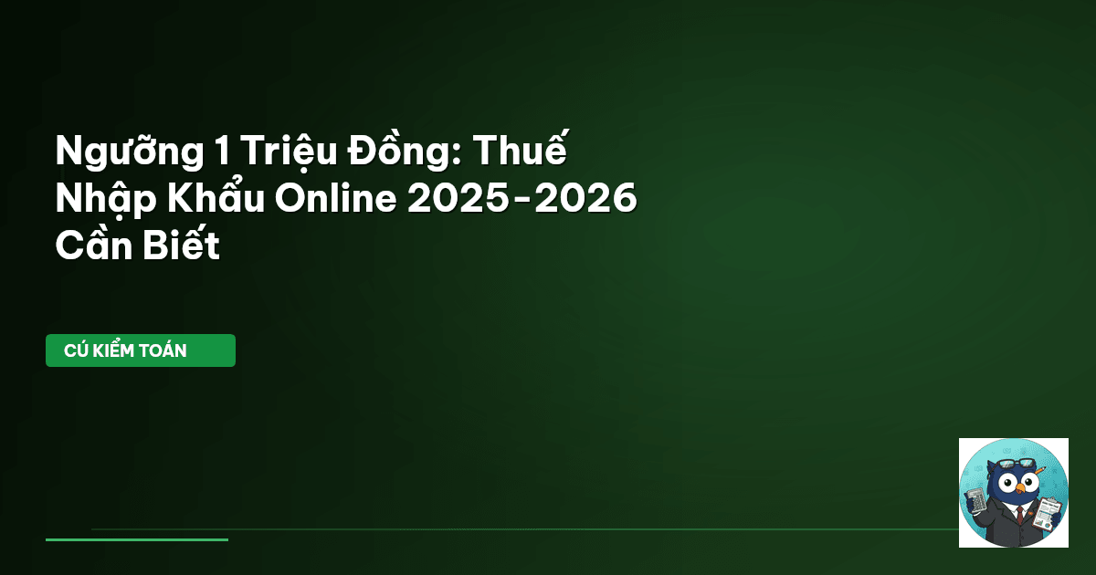 ⏱️ 13 phút đọc · 2441 từ Quy Định Mới: Ngưỡng Miễn Thuế Online Chỉ Còn 1 Triệu Đồng Cú Kiểm Toán vừa soi kỹ. Kể từ năm 2025-2026, sân chơi thương mại điện tử nhập khẩu Việt Nam có nhiều thay đổi lớn. Đây không phải chuyện nhỏ, đặc biệt với những ai đang kinh doanh hoặc thường xuyên mua sắm hàng hóa xuyên biên giới. Những thay đổi này ảnh hưởng trực tiếp đến túi tiền của bạn, từ món đồ nhỏ mua trên sàn quốc tế đến nguyên liệu nhập khẩu cho doanh nghiệp. Cụ thể nhất, ngưỡng miễn thuế nhập khẩu cho…