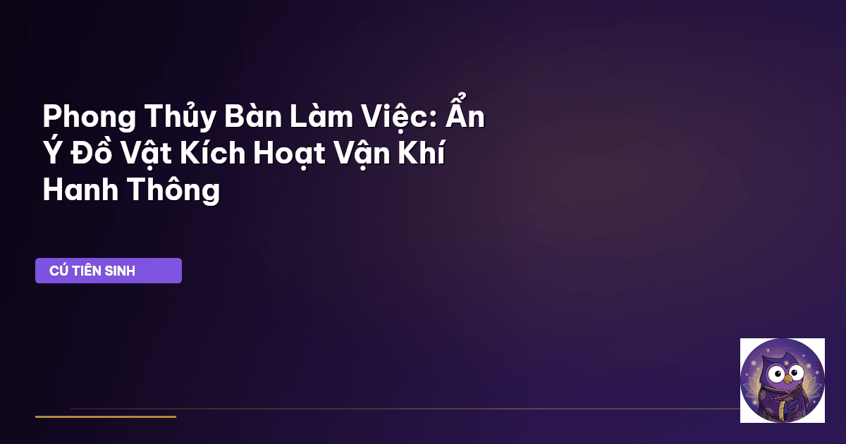 ⏱️ 13 phút đọc · 2584 từ Giới Thiệu Kính thưa quý vị thiện hữu, những người đang ngày đêm miệt mài trên hành trình sự nghiệp! Đã bao giờ quý vị dừng lại và chiêm nghiệm về không gian làm việc của mình chưa? Một không gian tưởng chừng chỉ là nơi đặt để những vật dụng vô tri, nhưng dưới con mắt của Cú Tiên Sinh, đó lại là một tiểu vũ trụ, nơi năng lượng vũ trụ giao thoa và ảnh hưởng trực tiếp đến vận mệnh, tài lộc cùng sự hanh thông trong công việc của mỗi chúng ta. Người xưa dạy: "Nhất mệnh, nhì …