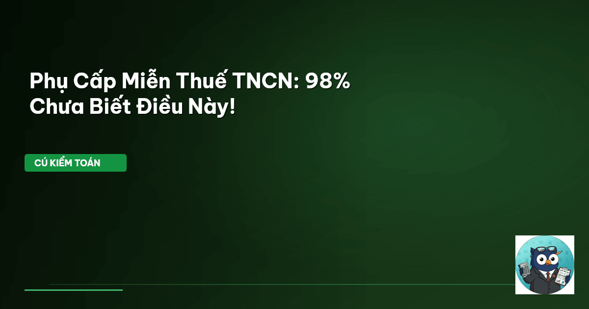 ⏱️ 10 phút đọc · 1813 từ Giới Thiệu: Đừng Để 'Phụ Cấp' Biến Thành 'Khoản Chịu Thuế' Bất Ngờ Chủ doanh nghiệp, kế toán, người lao động đều nghe về 'phụ cấp miễn thuế'. Tuy nhiên, Cú Kiểm Toán đã 'soi' thấy không ít trường hợp hiểu sai, dẫn đến việc bị truy thu thuế hoặc bỏ lỡ cơ hội tối ưu hóa thu nhập hợp pháp. Không phải mọi khoản phụ cấp nào cũng được miễn thuế thu nhập cá nhân (TNCN). Sự khác biệt nằm ở bản chất khoản chi, mục đích sử dụng và quan trọng nhất là chứng từ hợp lệ theo quy định. …