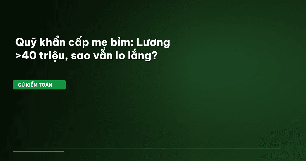 ⏱️ 11 phút đọc · 2118 từ Chào Mẹ Bỉm: Lương Tăng Cao, Nỗi Lo Có Giảm? Chào các mẹ bỉm thân mến! Chắc hẳn nhiều mẹ ở các khu công nghiệp (KCN) đang làm việc cật lực, tăng ca (OT) quên cả giờ giấc để mang về thu nhập tốt cho gia đình. Cú Kiểm Toán biết, có những mẹ công nhân thu nhập gộp cả lương cơ bản và tiền tăng ca có thể lên đến hơn 40 triệu đồng mỗi tháng . Con số này không hề nhỏ, đúng không nào? Nhiều người nhìn vào sẽ nghĩ: 'Lương cao vậy thì lo gì nữa!'. Nhưng chị Hồng ở đây để nói thẳng…