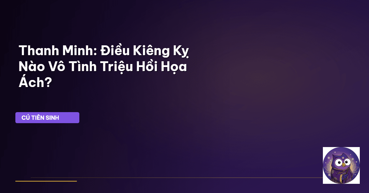 🦉 Cú nhận xét: Thanh Minh không chỉ là ngày tảo mộ. Đó là một lễ tiết quan trọng trong văn hóa Việt, gắn liền với tín ngưỡng thờ cúng tổ tiên. Việc tuân thủ các kiêng kỵ không phải là mê tín dị đoan, mà là thể hiện lòng thành kính, sự tôn trọng đối với người đã khuất và bảo vệ sự bình an cho người sống.