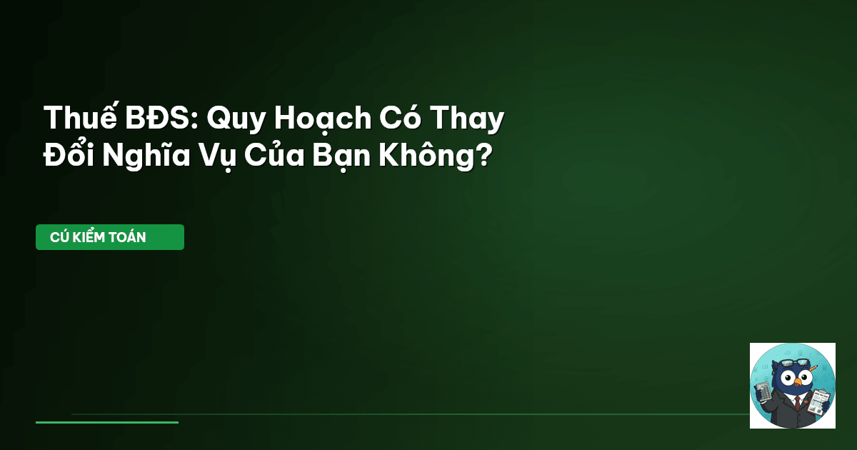 ⏱️ 16 phút đọc · 3182 từ Giới Thiệu: Đừng Để Quy Hoạch "Kiểm Toán" Khoản Thuế Bất Ngờ Trong thế giới đầu tư và giao dịch bất động sản (BĐS), việc "nhìn xa trông rộng" không chỉ dừng lại ở vị trí, tiềm năng tăng giá. Cú Kiểm Toán xin khẳng định: thông tin quy hoạch mới là yếu tố quyết định nghĩa vụ thuế BĐS của bạn. Một thay đổi nhỏ trên bản đồ quy hoạch có thể biến khoản đầu tư tiềm năng thành "gánh nặng" thuế không ngờ. Đã bao giờ bạn tự hỏi, mảnh đất mình đang nắm giữ, hay dự định mua, liệu có…