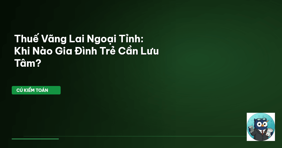 "Thuế vãng lai ngoại tỉnh" – một thuật ngữ có vẻ phức tạp nhưng lại ẩn chứa nhiều rủi ro nếu không được hiểu rõ. Nhiều gia đình trẻ, với quỹ thời gian eo hẹp và ưu tiên cho con cái, thường bỏ qua việc tìm hiểu sâu các quy định này, dẫn đến những khoản phạt không đáng có. Đây là lúc Cú Kiểm Toán ra tay, soi kỹ từng con số, từng điều luật để giúp bạn.