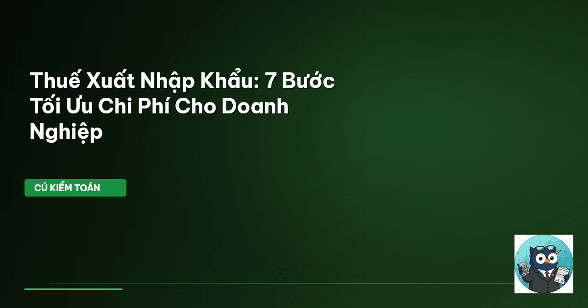 Bài viết này, Cú Kiểm Toán sẽ chỉ rõ 7 bước cốt lõi để doanh nghiệp không chỉ tuân thủ đúng luật mà còn tối ưu hóa chi phí thuế xuất nhập khẩu. Chúng ta sẽ soi kỹ từng con số, từng điều luật để biến gánh nặng thuế thành lợi thế cạnh tranh.
