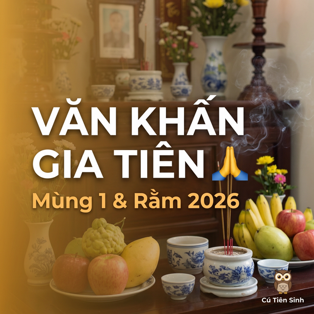 Tóm tắt: Bài văn khấn gia tiên ngày Mùng 1 và Rằm hàng tháng đầy đủ nhất 2026. Gồm văn khấn Thổ Công, gia tiên, sườn lễ, lưu ý theo vùng miền. Giới Thiệu Cứ đầu tháng Mùng 1 và ngày Rằm ( ngày Sóc và ngày Vọng ), hàng triệu gia đình Việt Nam thắp hương cúng gia tiên — một nét đẹp văn hóa đã truyền qua bao thế hệ. Nhưng nhiều bạn trẻ lần đầu tự lập, chuyển ra ở riêng lại lúng túng: "Khấn gì? Khấn theo thứ tự nào? Sườn lễ cần những gì?" Bài viết này sẽ hướng dẫn bạn toàn bộ quy trình cúng Mùng 1 v…