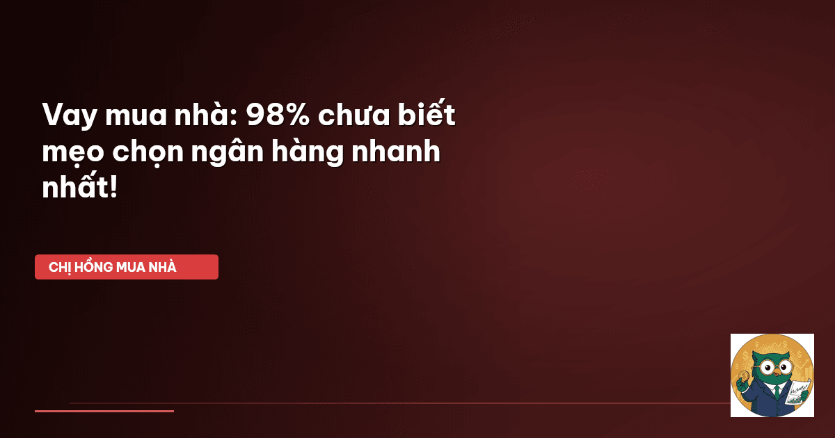 ⏱️ 12 phút đọc · 2267 từ Giới Thiệu: Vay mua nhà nhanh - Ước mơ của mọi gia đình Việt! Chào cả nhà Cú Thông Thái! Chị Hồng biết là các mẹ bỉm, các gia đình trẻ mình ai cũng mong muốn có một mái ấm riêng, nhưng cứ nghĩ đến khoản vay mua nhà là thấy "oải" đúng không? Nào là thủ tục giấy tờ rườm rà, nào là chờ đợi mòn mỏi, rồi lại sợ bị "hành" làm mất thời gian quý báu. Nhất là khi mình đang bận chăm con, đi làm, thời gian đúng là vàng bạc. Nhiều người cứ nghĩ, muốn vay mua nhà nhanh thì cứ chọn đạ…