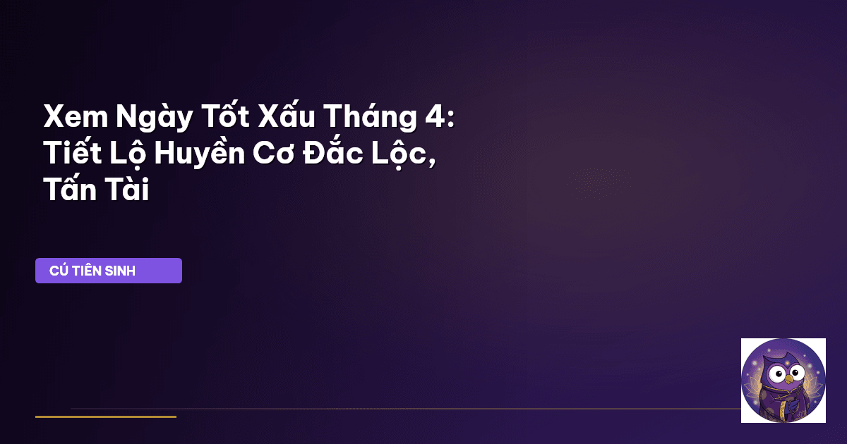 Nhưng liệu việc xem ngày tốt xấu có chỉ đơn thuần là tra cứu một cuốn lịch vạn niên? Hay đằng sau những con số, những danh xưng "Hoàng đạo", "Hắc đạo" còn ẩn chứa những huyền cơ mà nếu chúng ta biết cách khai mở, sẽ biến thành nguồn lực mạnh mẽ để định hướng vận mệnh? Cú Tiên Sinh cho rằng, việc tìm hiểu ngày tốt xấu không chỉ là một phong tục, mà còn là một nghệ thuật sống, một hành trình kết nối với năng lượng vũ trụ, giúp tâm ta an định, trí ta sáng suốt để đưa ra những quyết định đúng đắn. Hãy cùng Cú Tiên Sinh khám phá những tầng sâu của triết lý này, để tháng 4 không chỉ là một tháng bình thường, mà là một tháng của những khởi đầu cát tường, những thành tựu rạng rỡ.